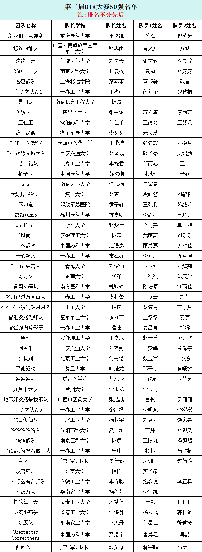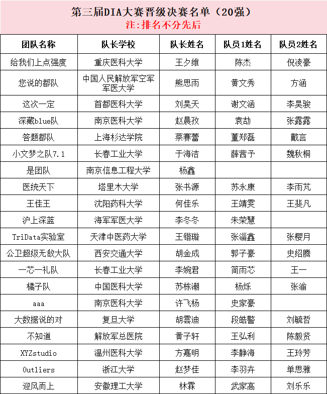 恭喜以下团队凭借创新算法、扎实数据洞察与卓越工程能力,从数百支队伍中脱颖而出,成功锁定决赛席位!